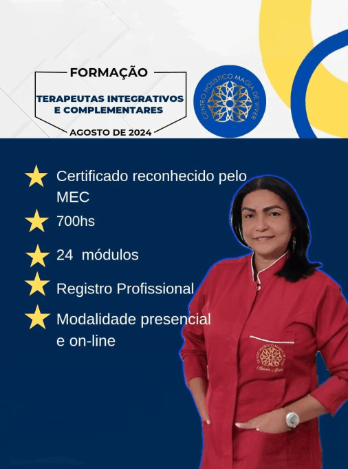 Transforme esta experiência em trabalho, aumente o número de sorrisos e garanta um modo de vida pleno em realização pessoal e profissional. Nós lhe esperamos aqui no Curso de Formação em Terapias Integrativas e Complementares.